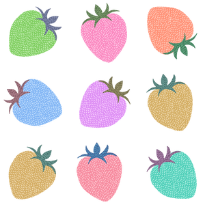 COLORED BERRIES by HEND SHEHATA, digitally printed on a hand-made Denim Jacket with 3 color choices: Stonewash, White, or Black. Unisex XS S M L XL 2X 3X