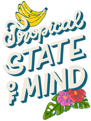 TROPICAL STATE OF MIND by INDYSIGN, digitally printed on a hand-made Denim Jacket with 3 color choices: Stonewash, White, or Black. Unisex XS S M L XL 2X 3X