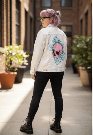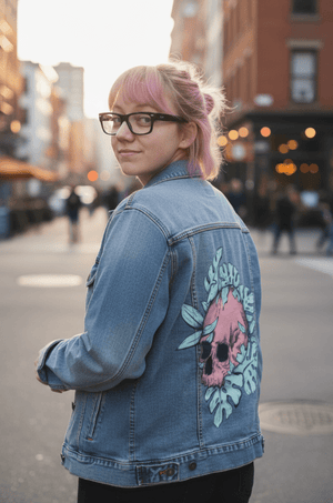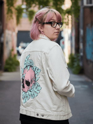 Liquid error (snippets/social-meta-info line 24): Unknown operator startswith BOTANICAL SKULL by JESS ADAMS printed by DenimINK on hand-crafted Denim Jackets and other denim products - Denim INK