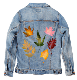 FALL LEAVES by THEARTICSOUL, digitally printed on a hand-made Denim Jacket with 3 color choices: Stonewash, White, or Black. Unisex XS S M L XL 2X 3X