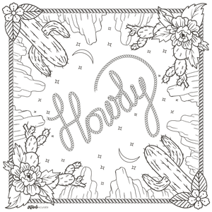 HOWDY SQUARE by KITSCH AND CURATE, digitally printed on a hand-made Denim Jacket with 3 color choices: Stonewash, White, or Black. Unisex XS S M L XL 2X 3X