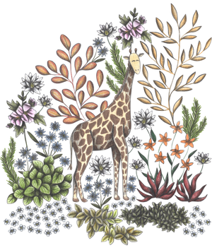 SAFARI GIRAFFE by CECILIA BATTAINI, digitally printed on a hand-made Denim Jacket with 3 color choices: Stonewash, White, or Black. Unisex XS S M L XL 2X 3X