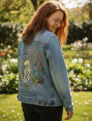 - Your denim jacket is a work of art. Spot clean small stains and hand wash when necessary with cold water. Hang to dry to ensure long lasting, vibrant prints