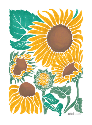 SUNFLOWER by KITSCH AND CURATE, digitally printed on a hand-made Denim Jacket with 3 color choices: Stonewash, White, or Black. Unisex XS S M L XL 2X 3X