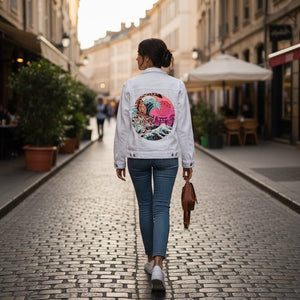 Ordered a custom blue jean jacket for my Mom with her art on it! She absolutely loves it! Seriously amazing quality, excellent customer service and super fast shipping! Vibrant colors too! If your looking for a custom jacket this is your place! Also super easy to design!