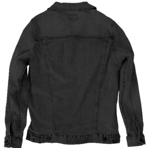 - Denim trucker jacket. 99% cotton, 1% spandex.