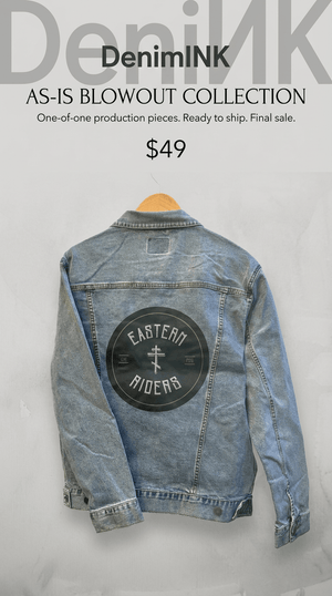 AS-IS. #10. Eastern Riders. ONE-OF-ONE. Printed Denim Jacket — Large / Stonewashed