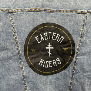 AS-IS.  Eastern Riders.  ONE-OF-ONE.  Printed Denim Jacket — Large / Stonewashed