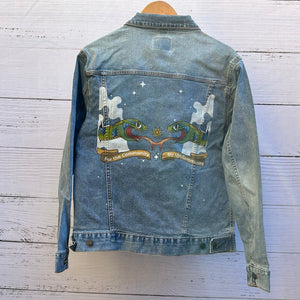 AS-IS. Twin Snakes “For the Community”.    ONE-OF-ONE.    Printed Denim Jacket — Medium / Stonewashed