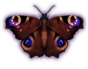richly colored symmetrical dark butterfly with wide outstretched wings rendered