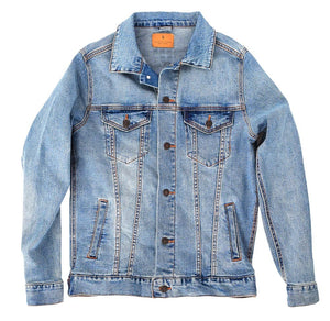 - Retail fit style, light stonewash denim jacket with 4 outer pockets and 2 hidden inner pockets