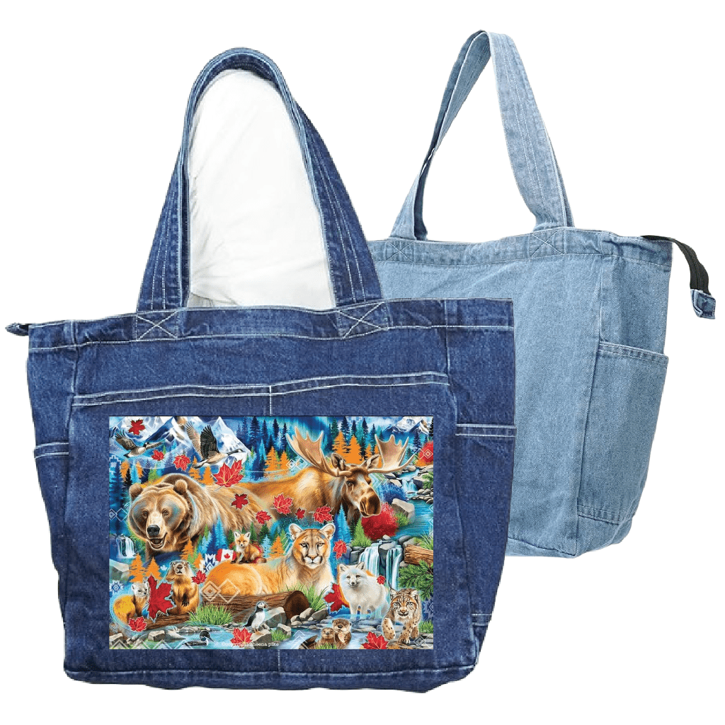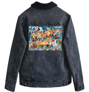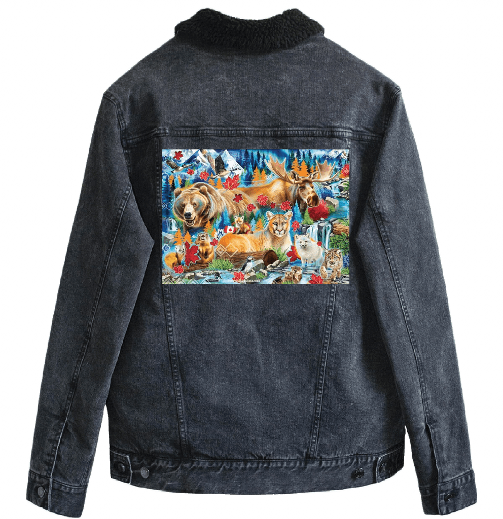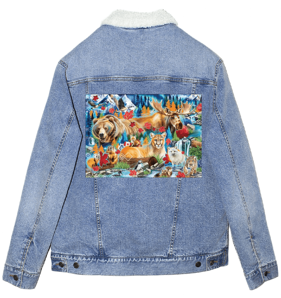 Stonewashed denim makes Canadian Magic feel lived-in and enduring. The animals feel like guardians of a place that has existed long before and will remain long after.