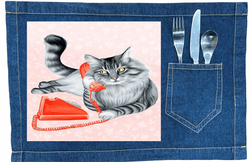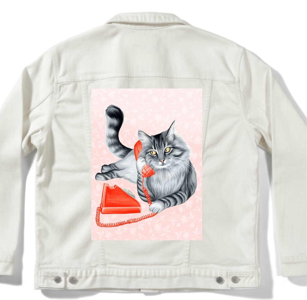 silhouettes. this artwork is titled “Cat on the Phone” and created by Amelia