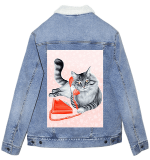 The red telephone on white denim becomes