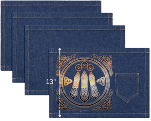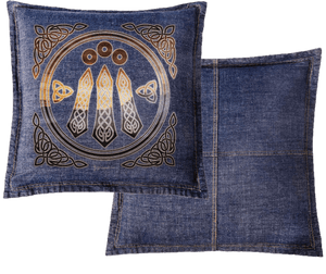 intricate interlaced knotwork and three small round dots above. Four ornate