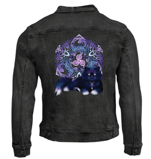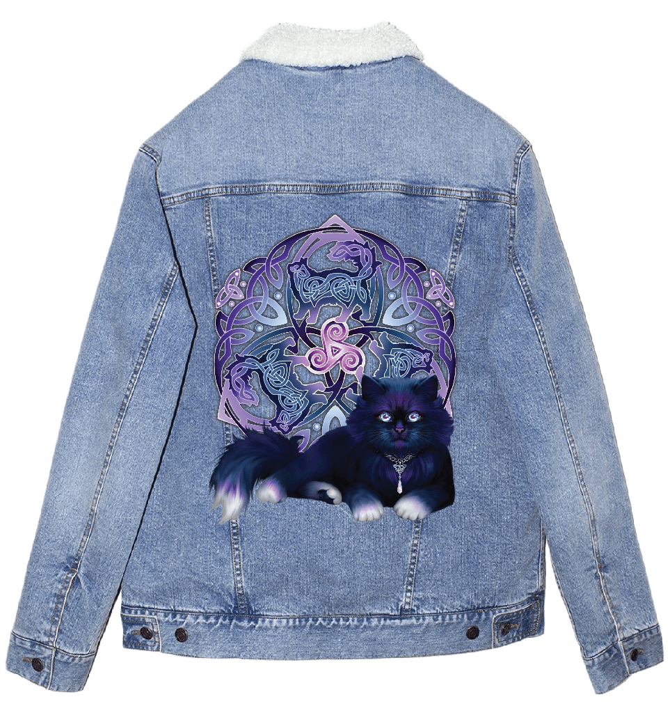 background. this artwork is titled “Celtic Black Fluffy Cat” and created by