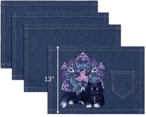 black denim, the piece turns inward and powerful. The cat’s body nearly merges