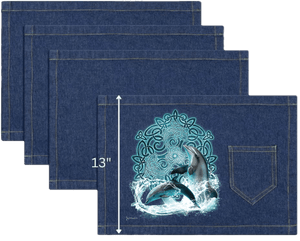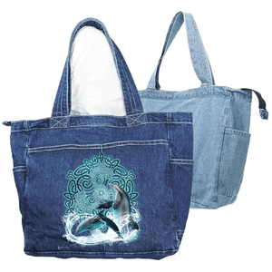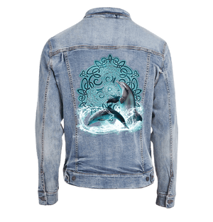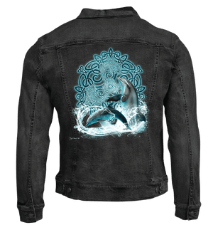 white denim, clarity asserts itself. The three intertwined dolphins are easiest