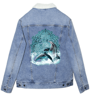 dolphins bound into one system, worn close, carrying the rhythm of water,