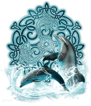 the center of the circle. this artwork is titled “Celtic Dolphin” and created