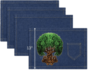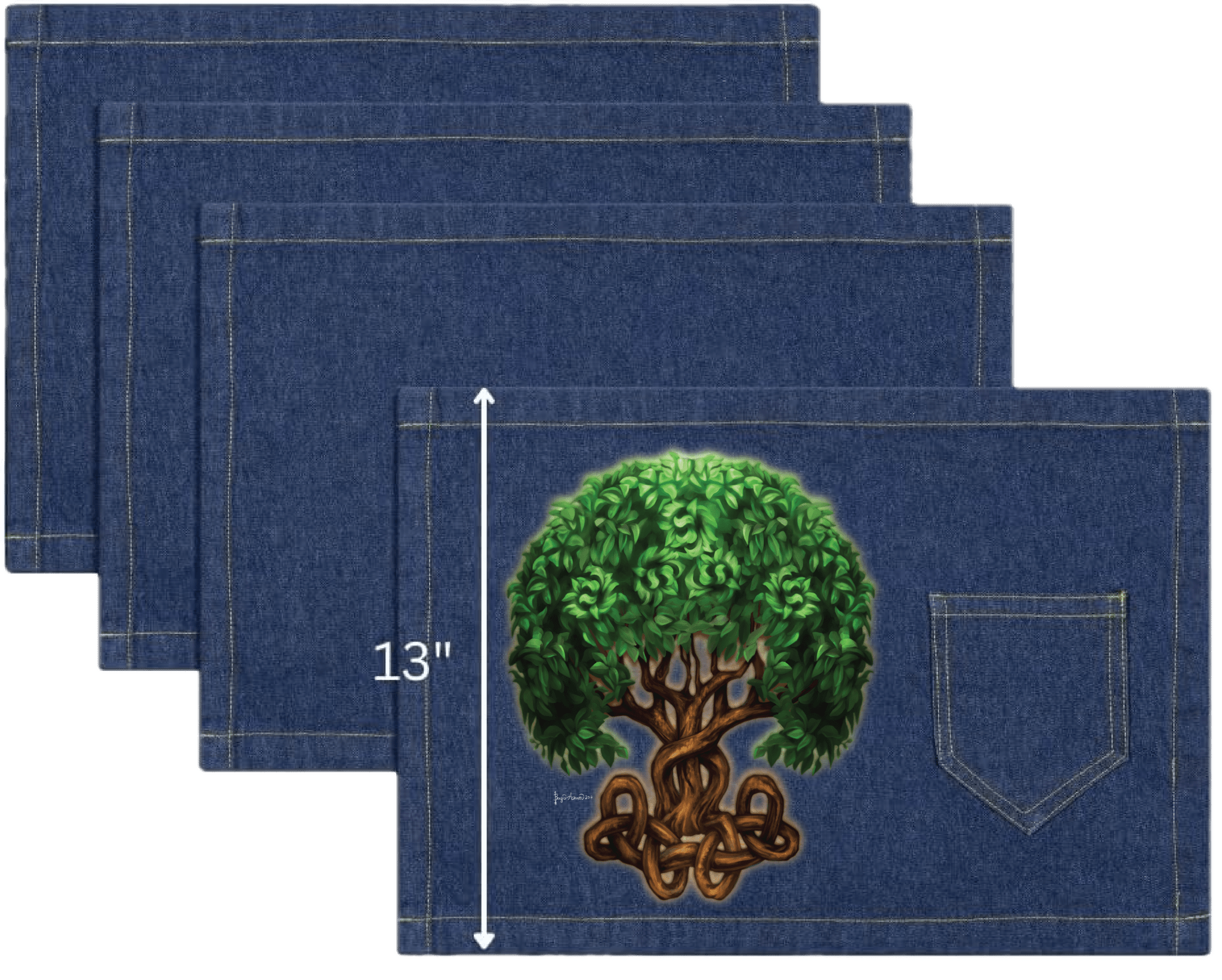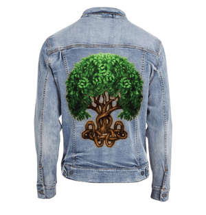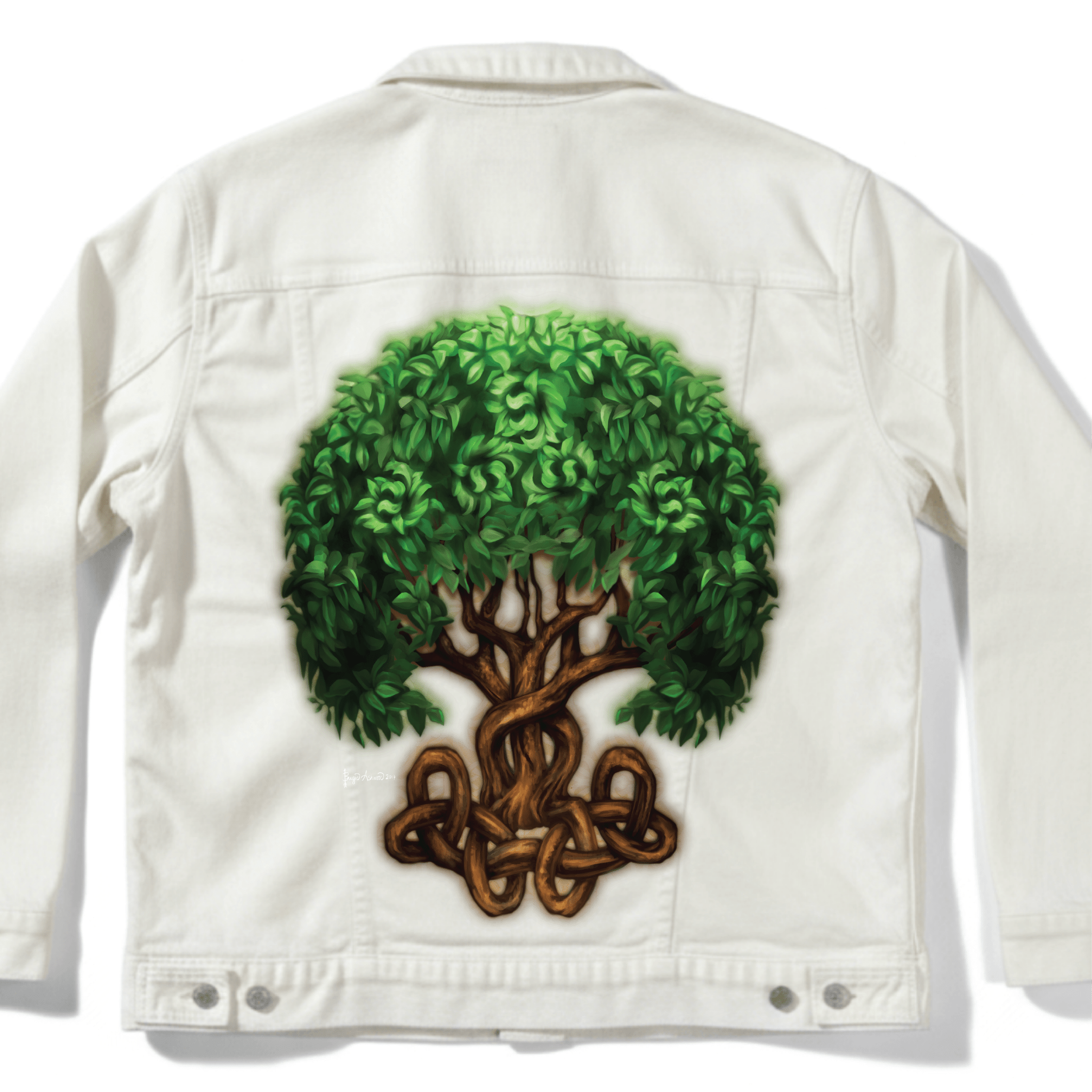 this artwork lives on stonewashed denim, the leaves soften first. The