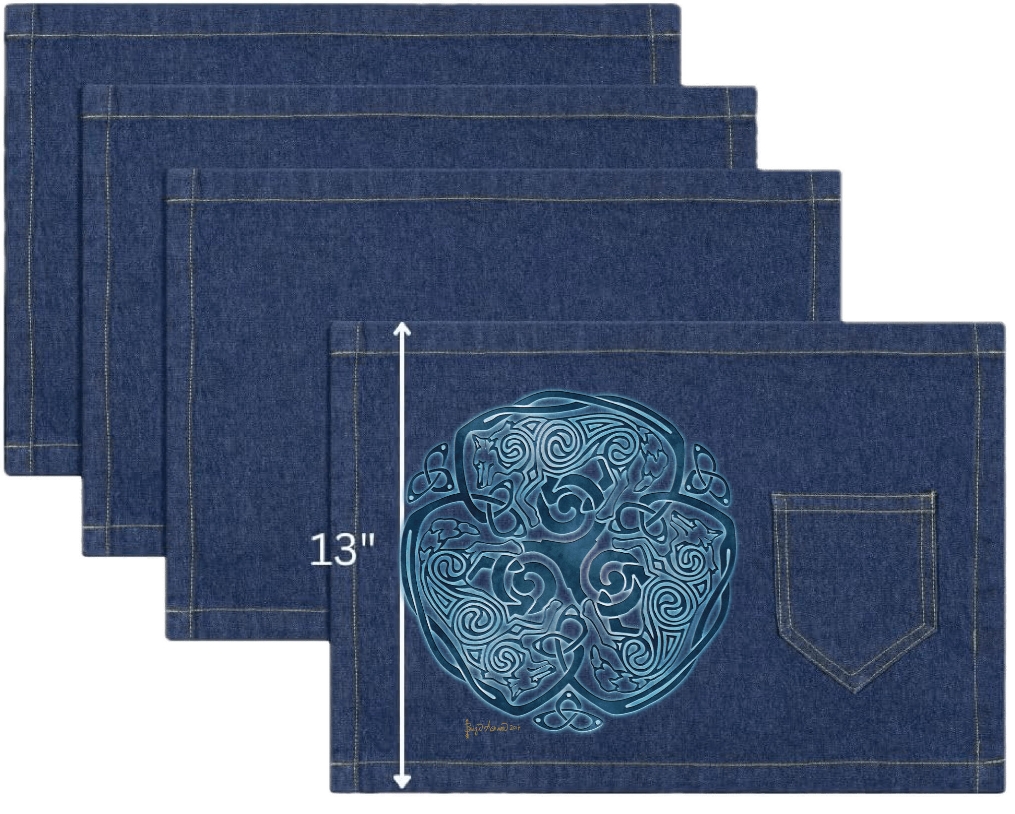 left, right, and bottom edges. This artwork is titled “Celtic Wolf” and created