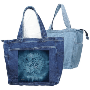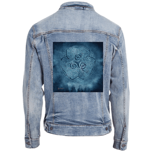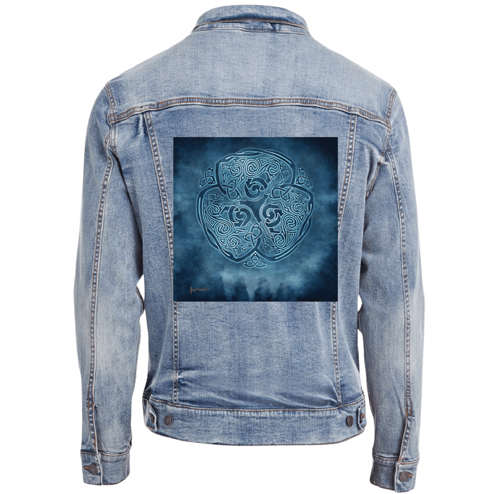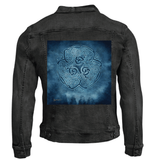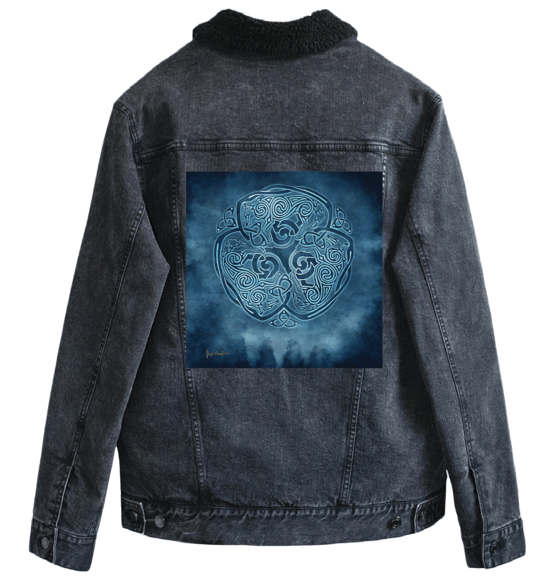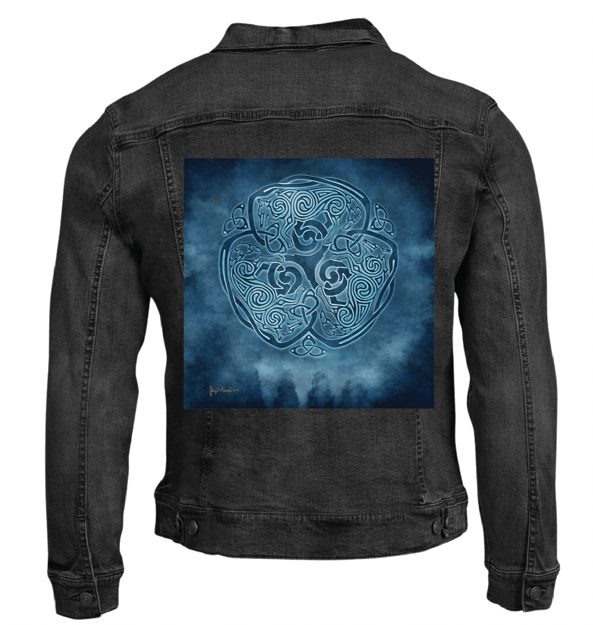 and the triskelion center feels visually magnetic. On black denim, the artwork