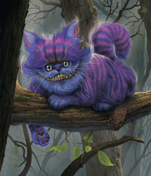CHESHIRE CAT by VINCENT HIE, digitally printed on a hand-made Denim Jacket with 3 color choices: Stonewash, White, or Black. Unisex XS S M L XL 2X 3X