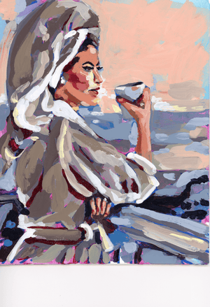 COFFEE GIRL by PAIGE FLOTTERUD digitally printed on a hand-made Denim Jacket with 3 color choices: Stonewash, White, or Black. Unisex XS S M L XL 2X 3X