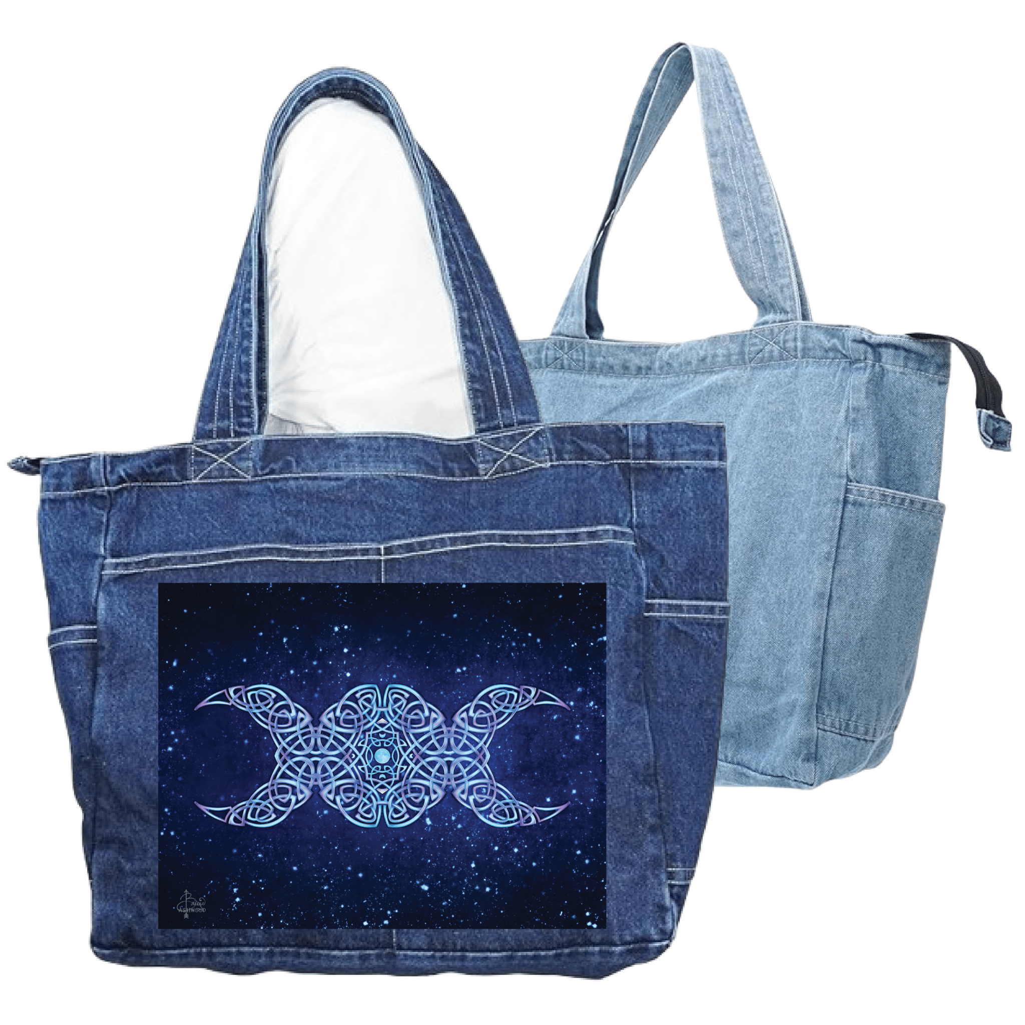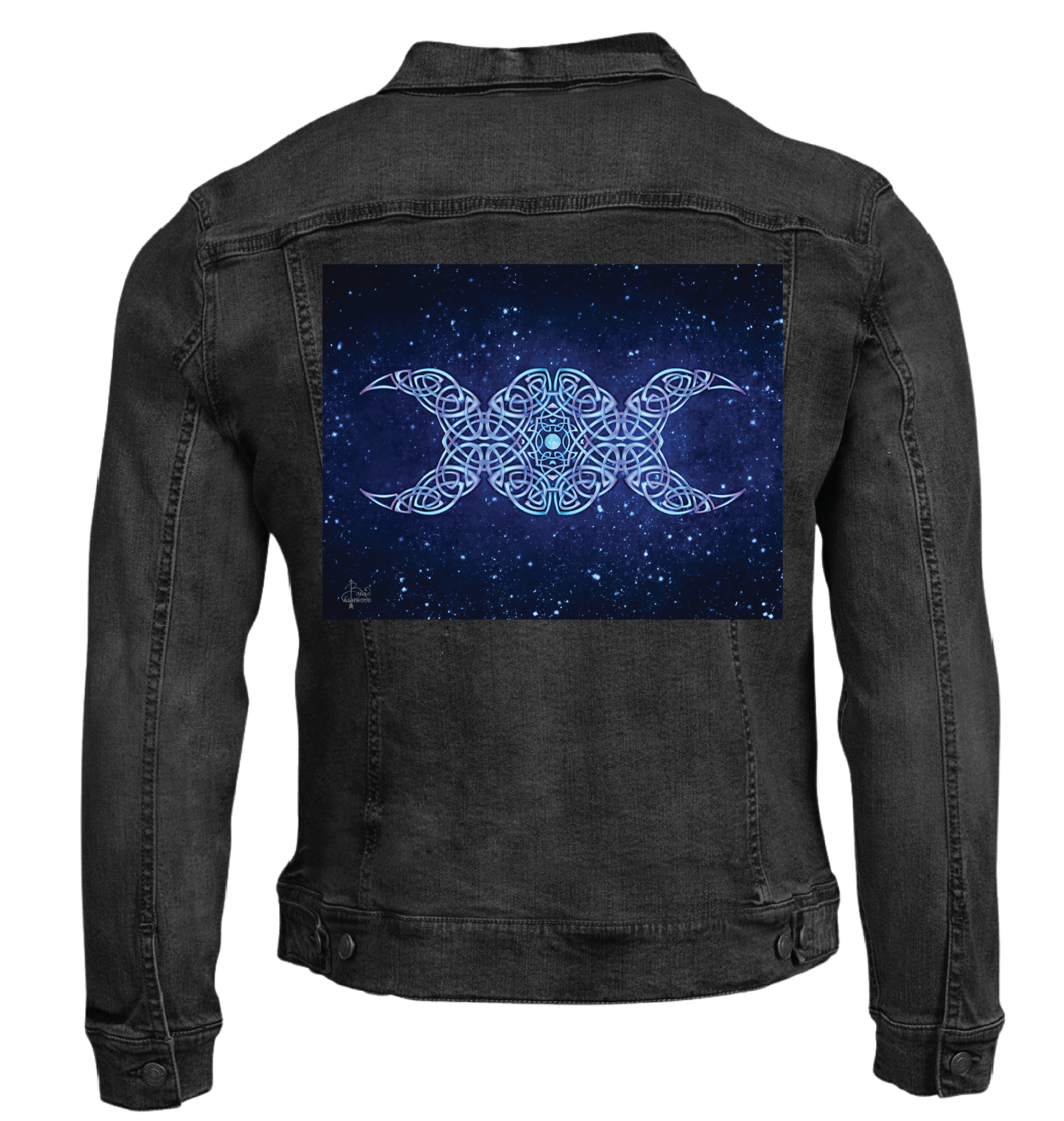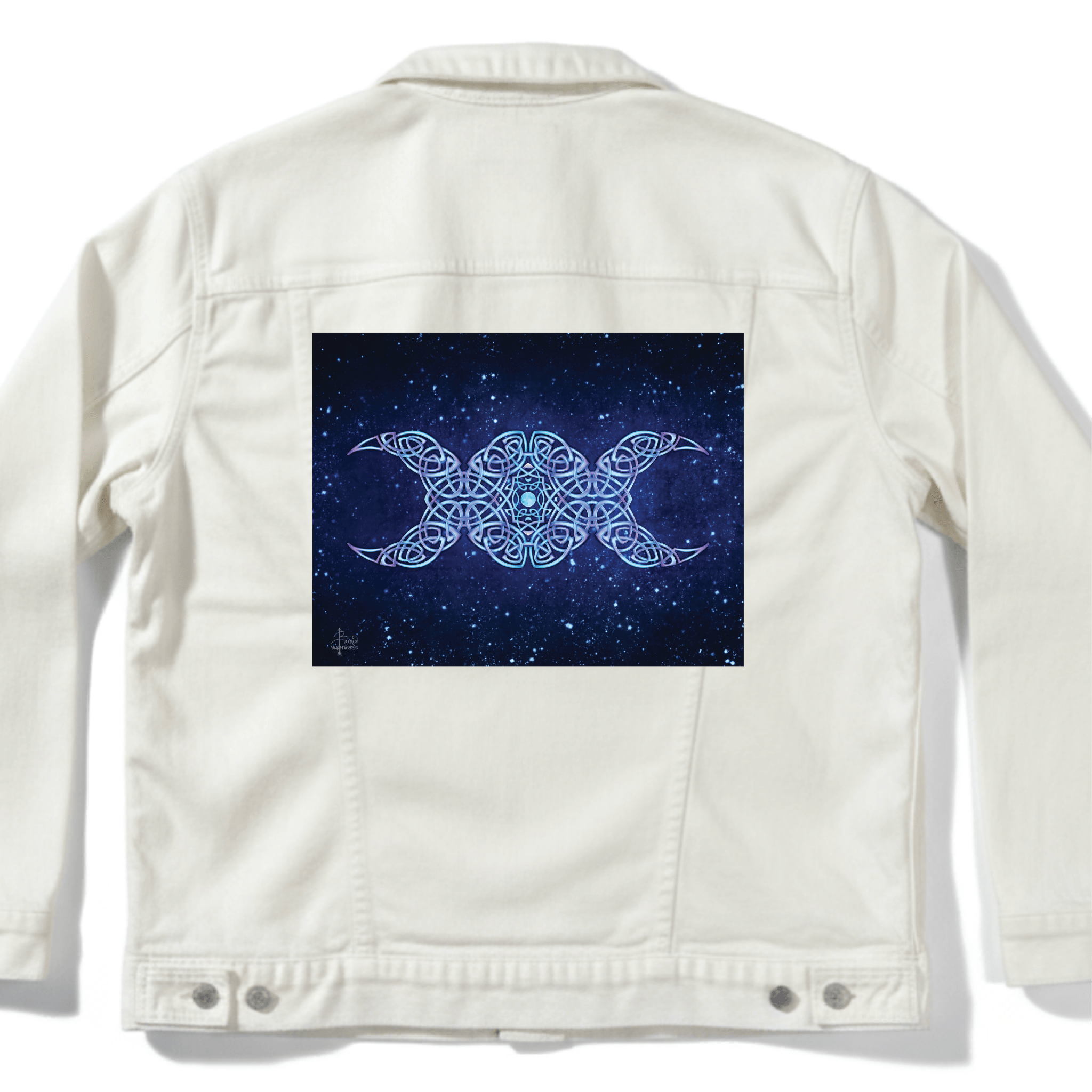 ofan elaborate Celtic knotwork triple-moon symbol rendered in luminous