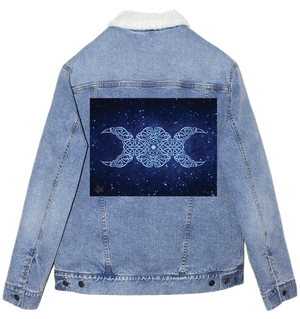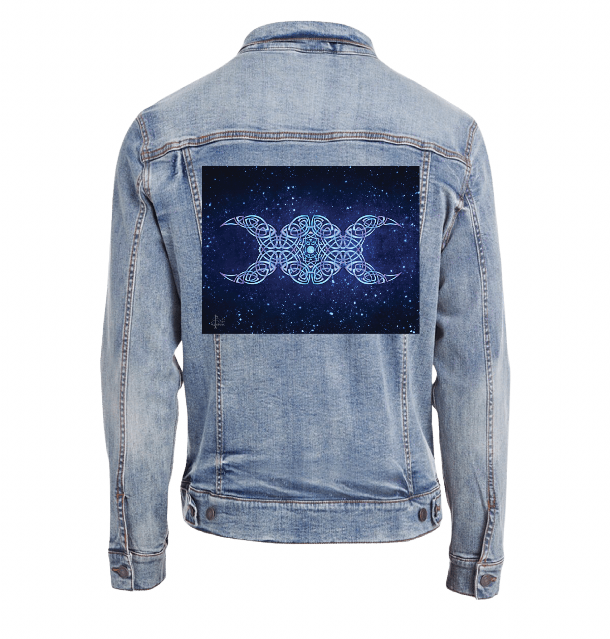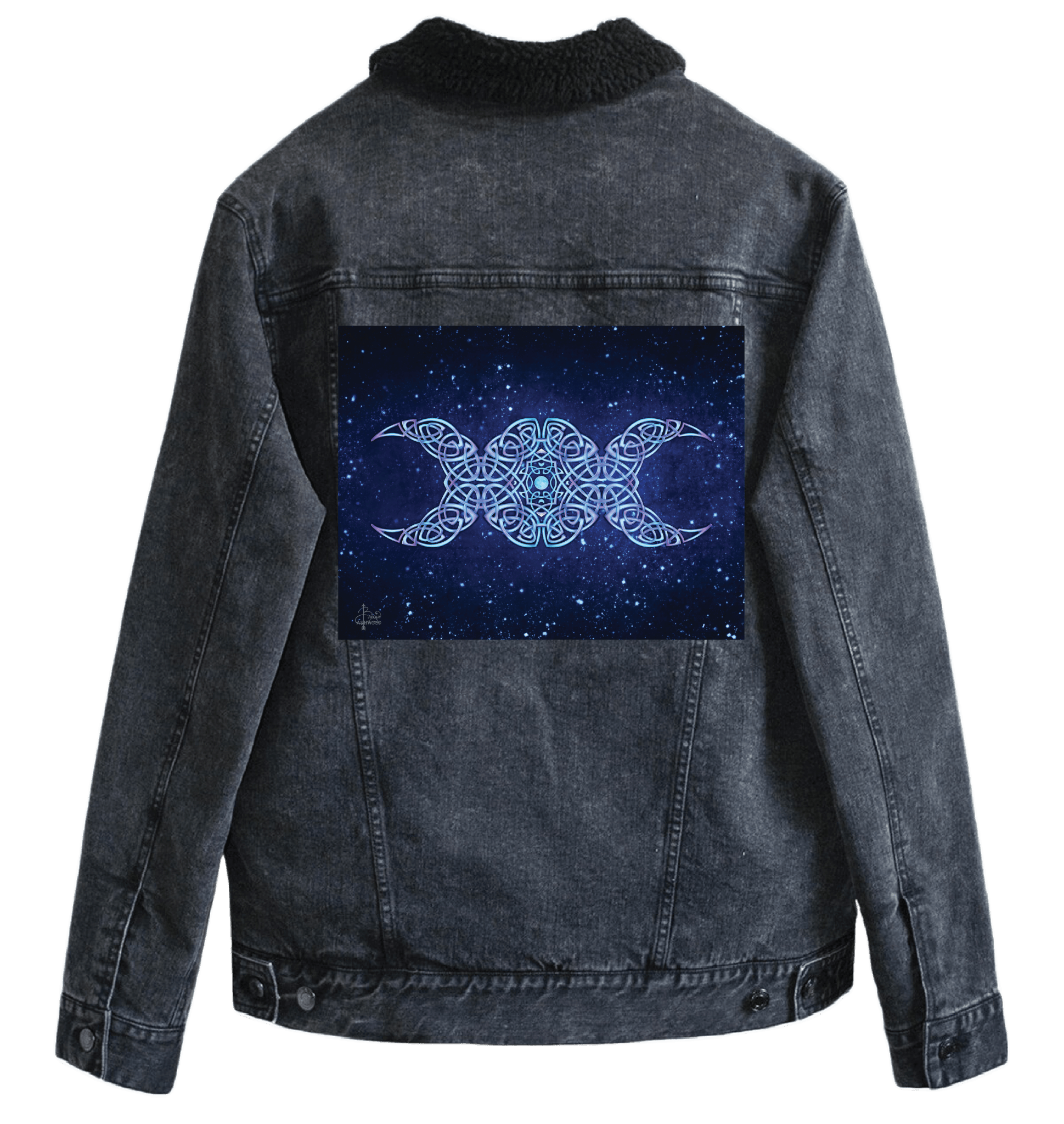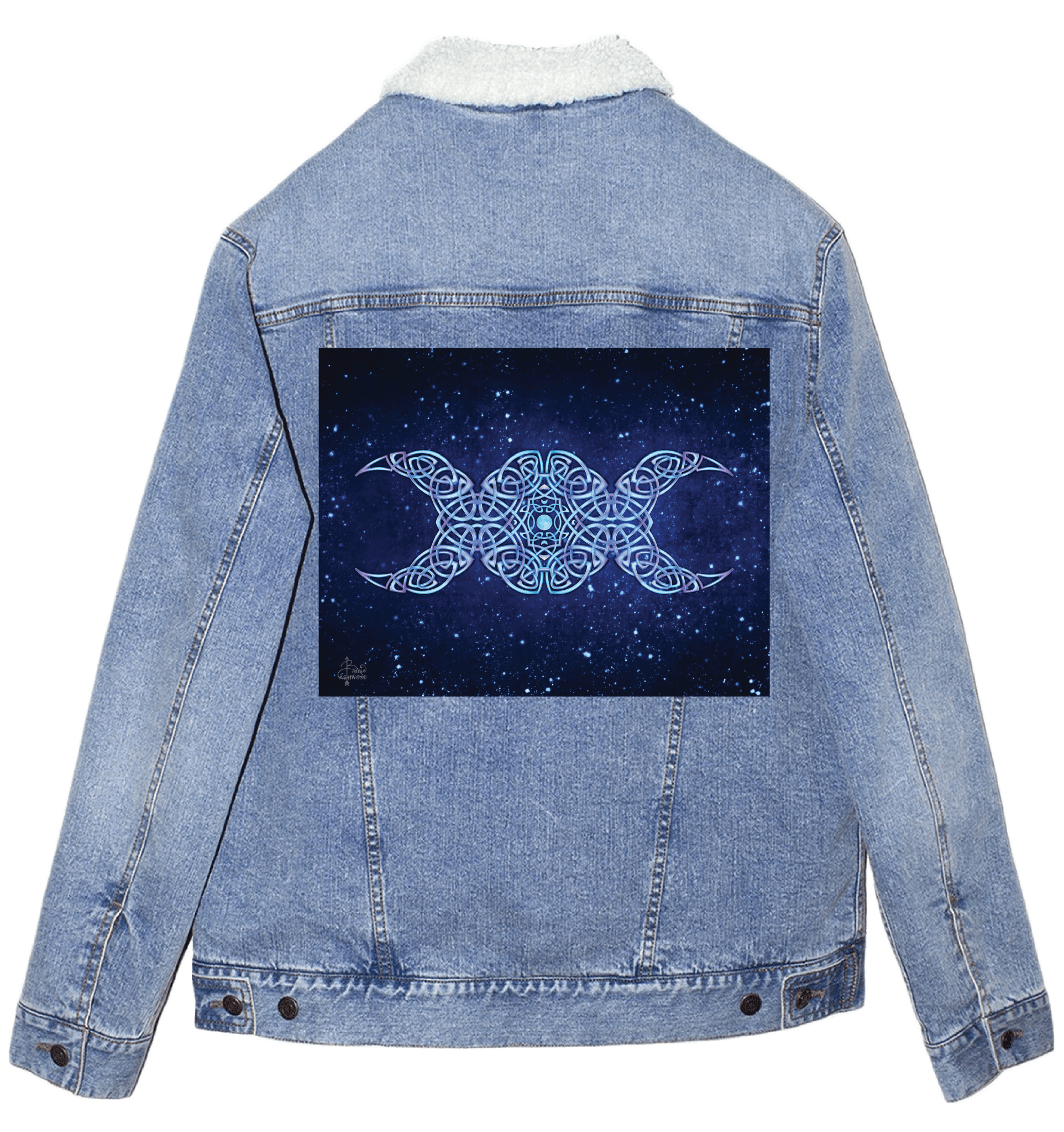 ofan elaborate Celtic knotwork triple-moon symbol rendered in luminous