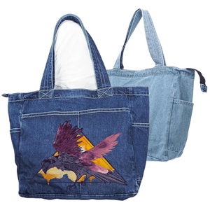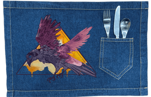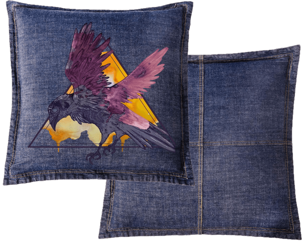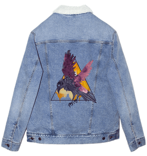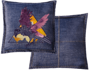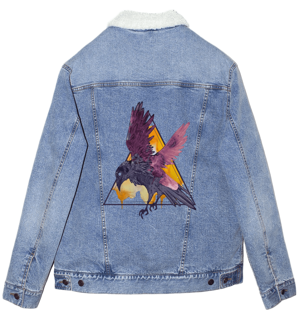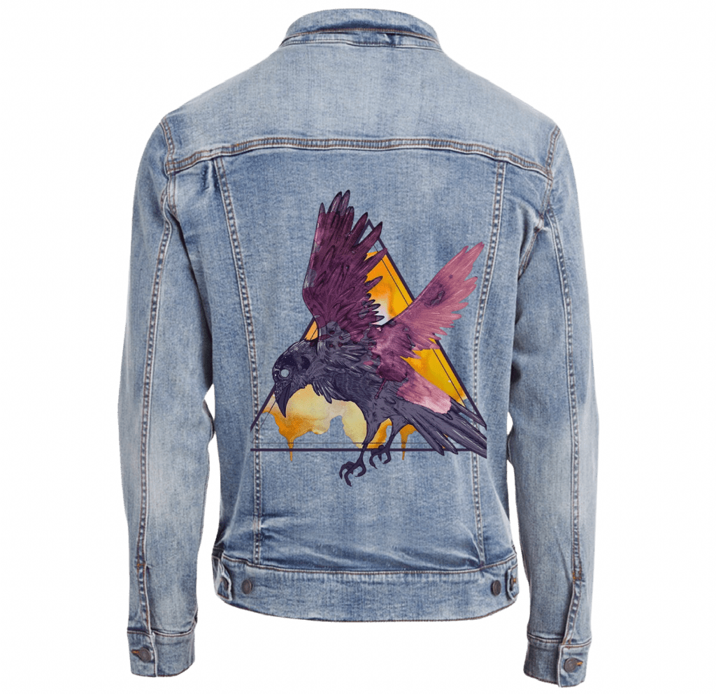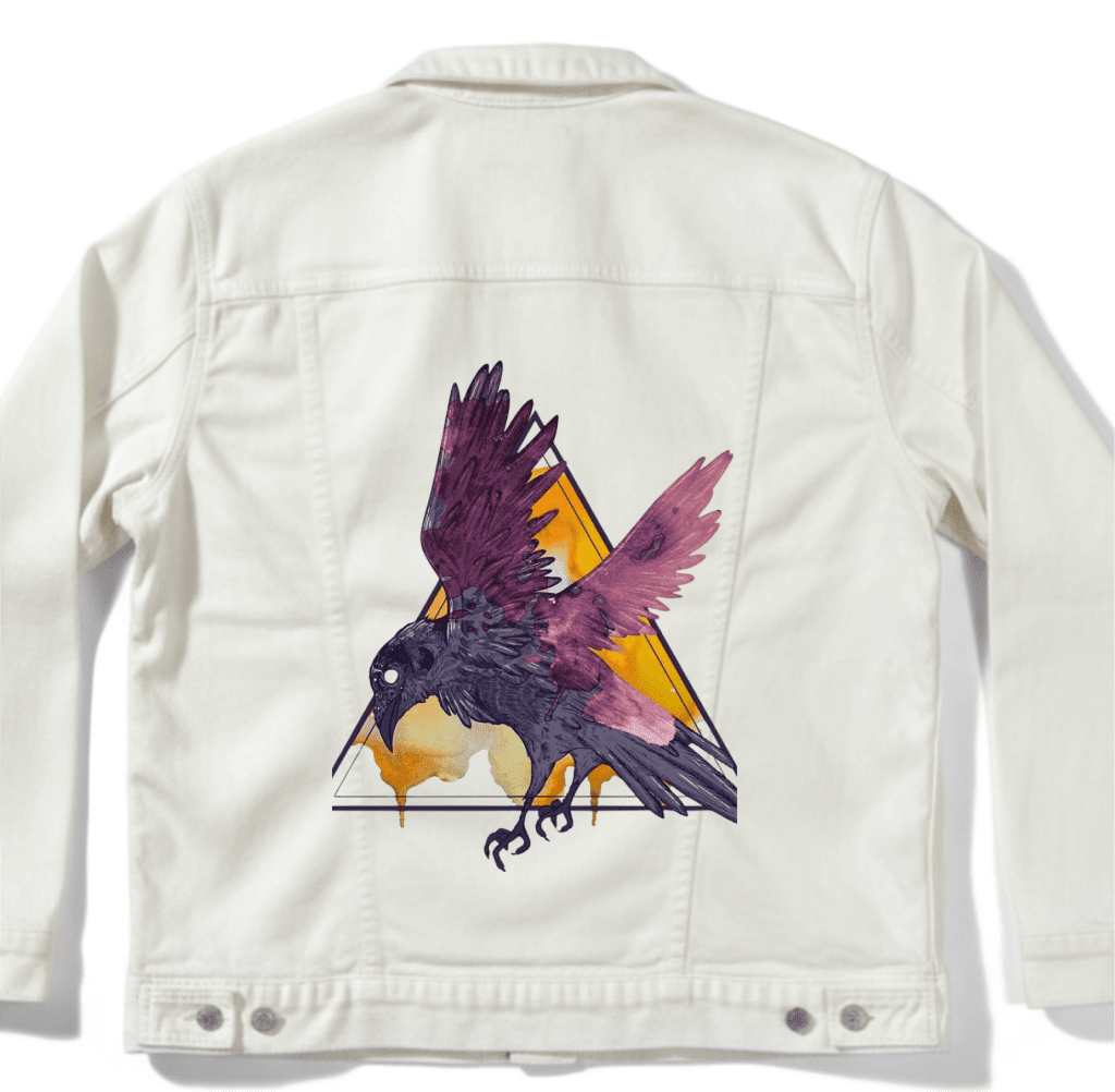 white denim, the artwork snaps into clarity. Every feather edge becomes