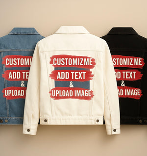 Customize & Create your own custom one-of-a-kind denim jacket. Customized and created by YOU to be exactly how you want it. Customer Designed with each piece is hand-crafted in Dallas, one custom masterpiece at a time, meticulously hand-crafted to create a truly unique piece of wearable art. We are changing the game in custom made-to-order products by making them more accessible and affordable while maintaining the premium, luxury quality you deserve. Using the latest technology, we’re able to capture insane levels of detail and print millions of colors! The perfect denim jacket does exist - you just haven’t created it yet!