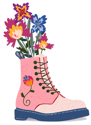 Emotionally, classic blue denim gives Floral Boots an everyday strength. The artwork feels wearable and steady, like creativity rooted in daily life. This matters because it turns growth into something practical and lived with—beauty carried forward step by step rather than displayed.