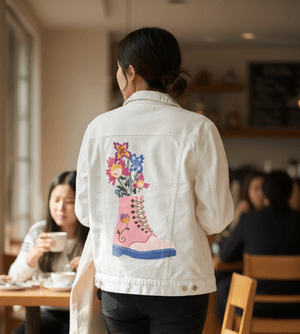 Ordered a custom blue jean jacket for my Mom with her art on it! She absolutely loves it! Seriously amazing quality, excellent customer service and super fast shipping! Vibrant colors too! If your looking for a custom jacket this is your place! Also super easy to design!