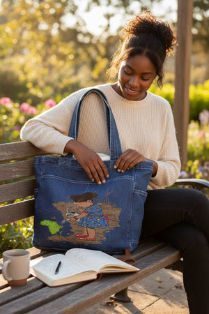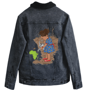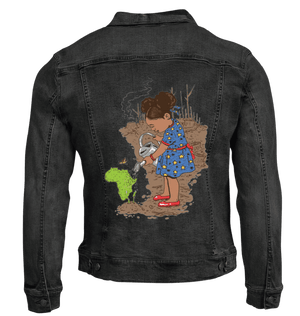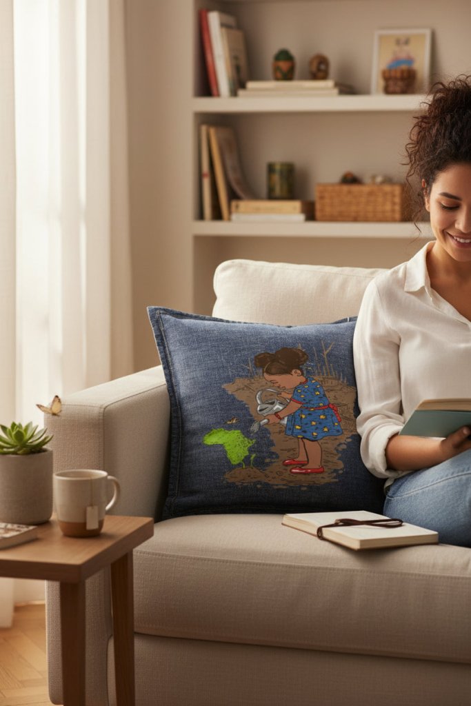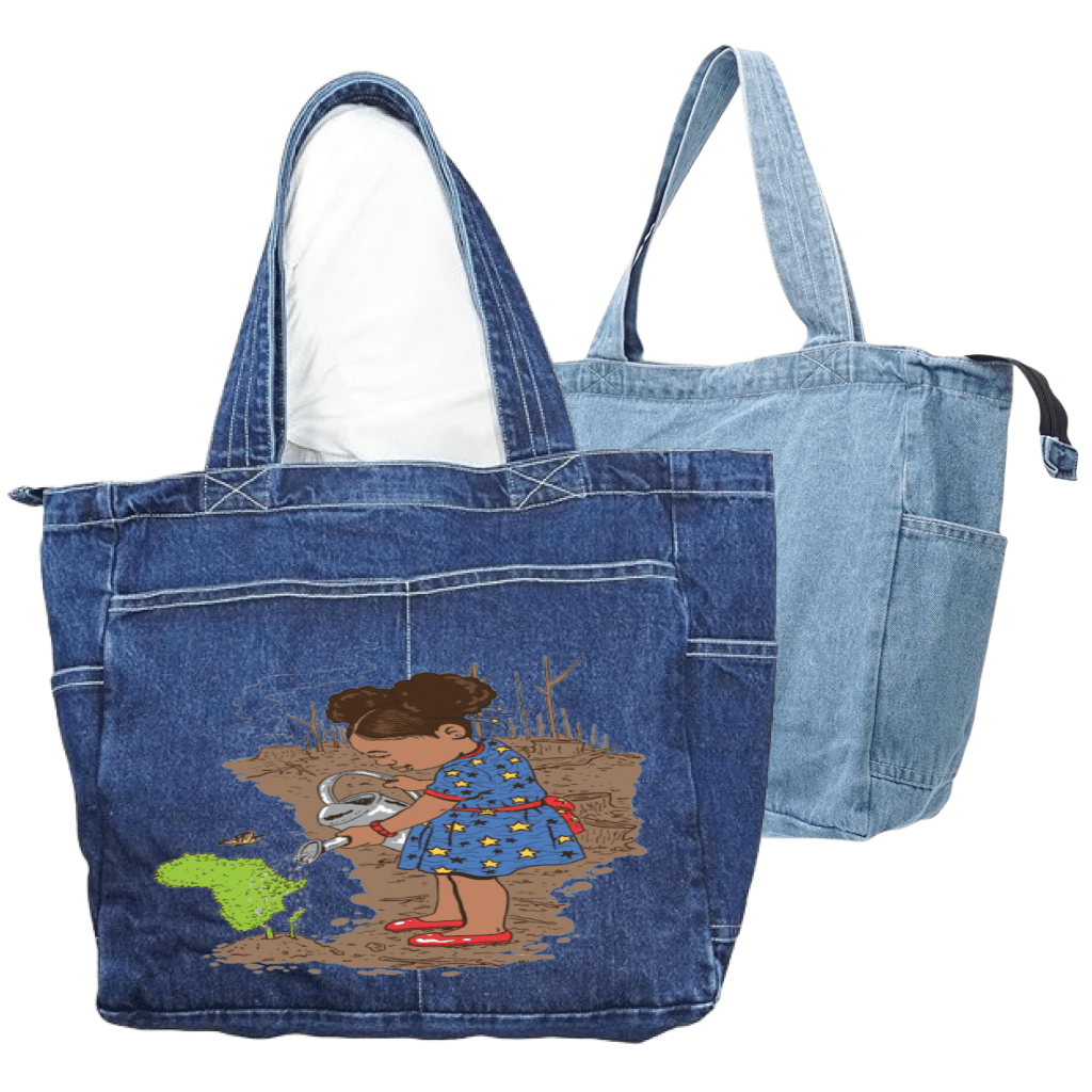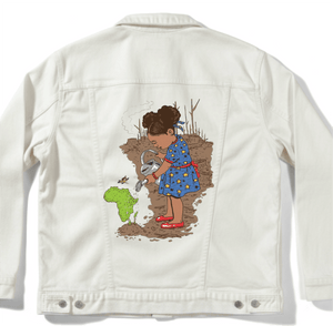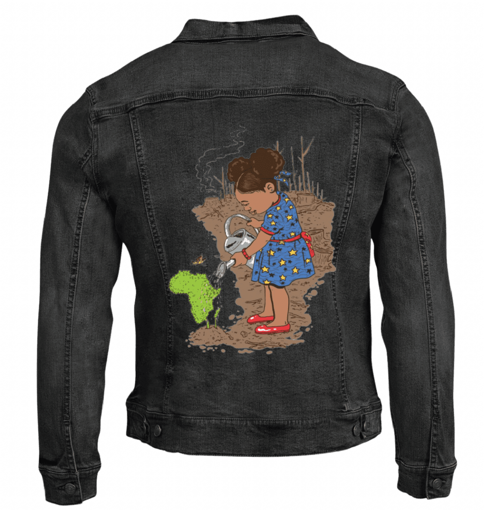 black denim transforms Girl Watering into a quiet declaration—growth