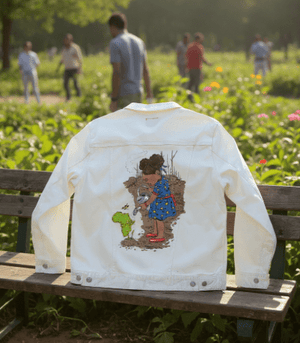 scarcity and care. Emotionally, white denim presents the artwork as purposeful