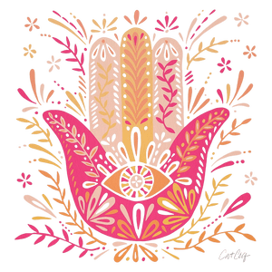 HAMSA HAND by Catcoq,digitally printed on a hand-made Denim Jacket with 3 color choices: Stonewash, White, or Black. Unisex XS S M L XL 2X 3X