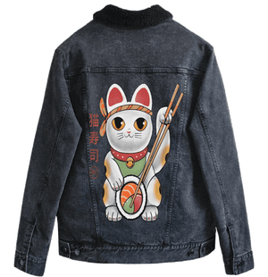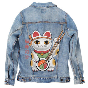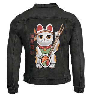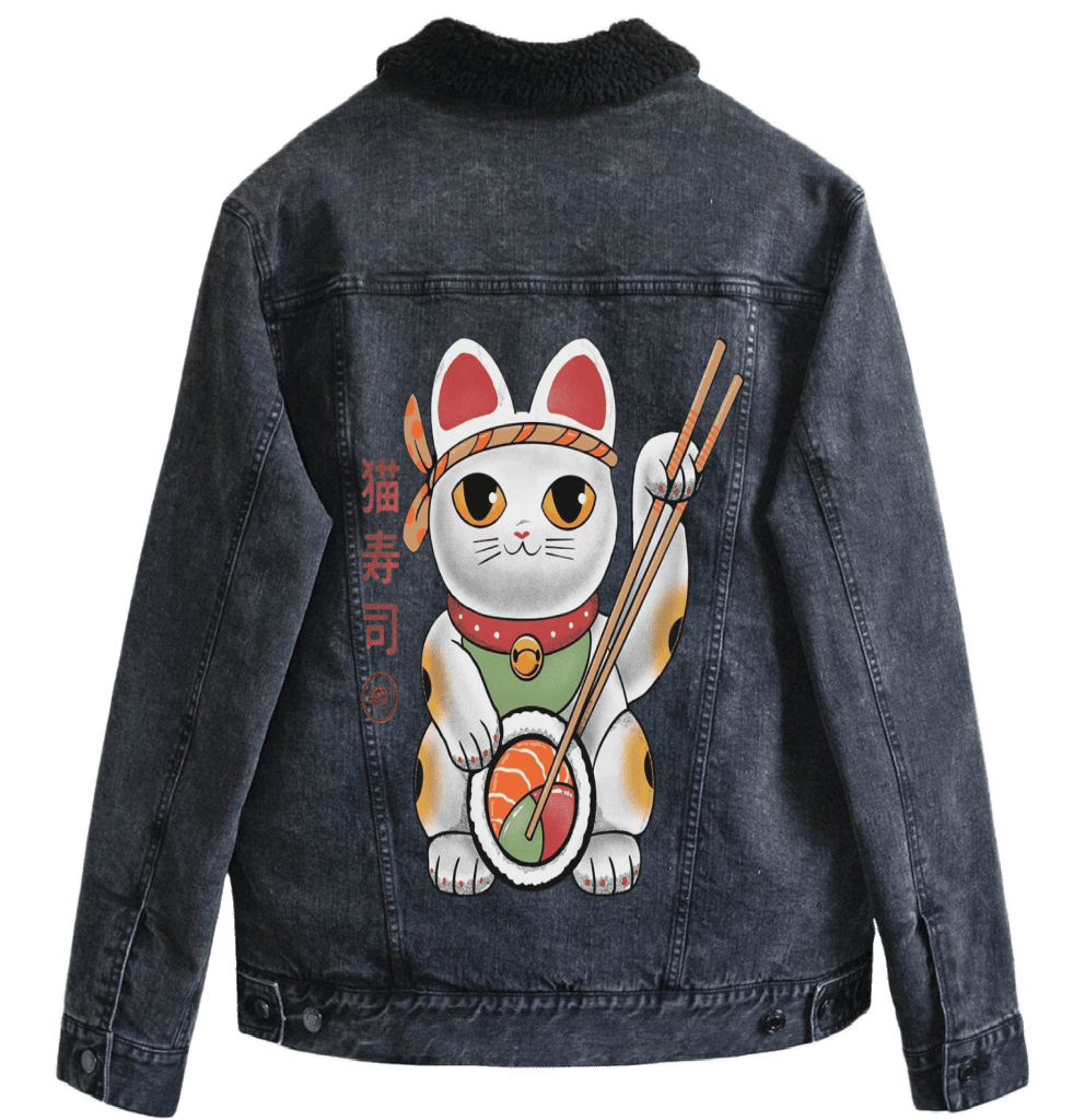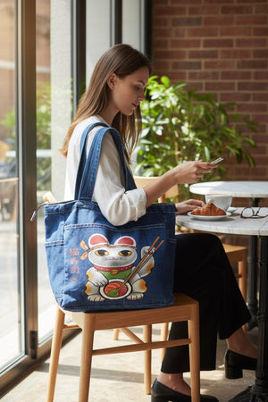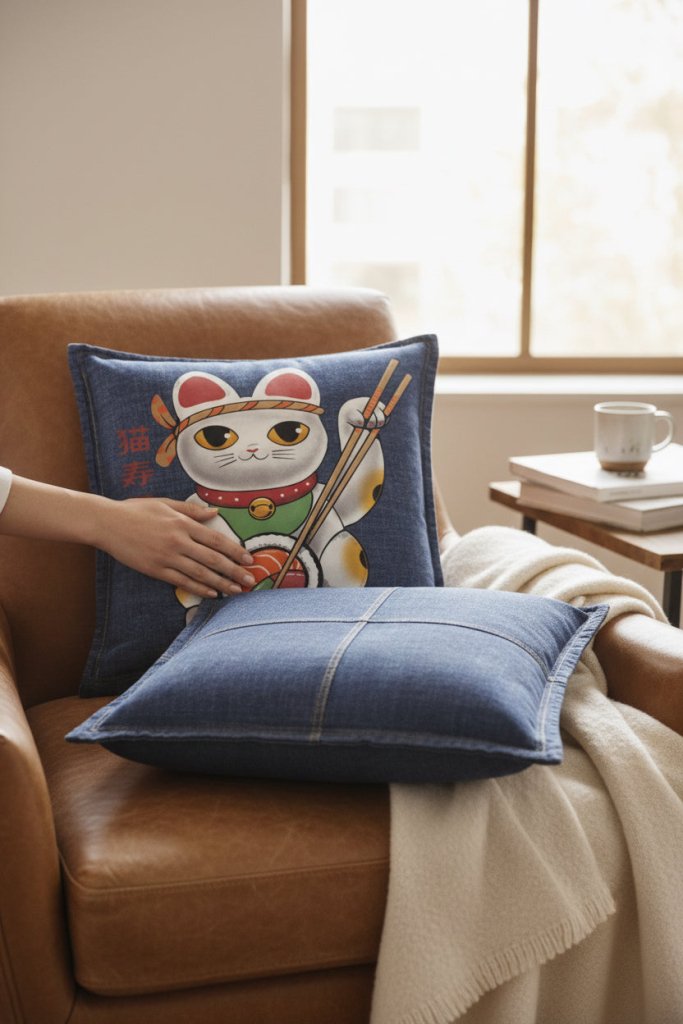 black denim turns the scene cinematic and intimate. The cat feels contained