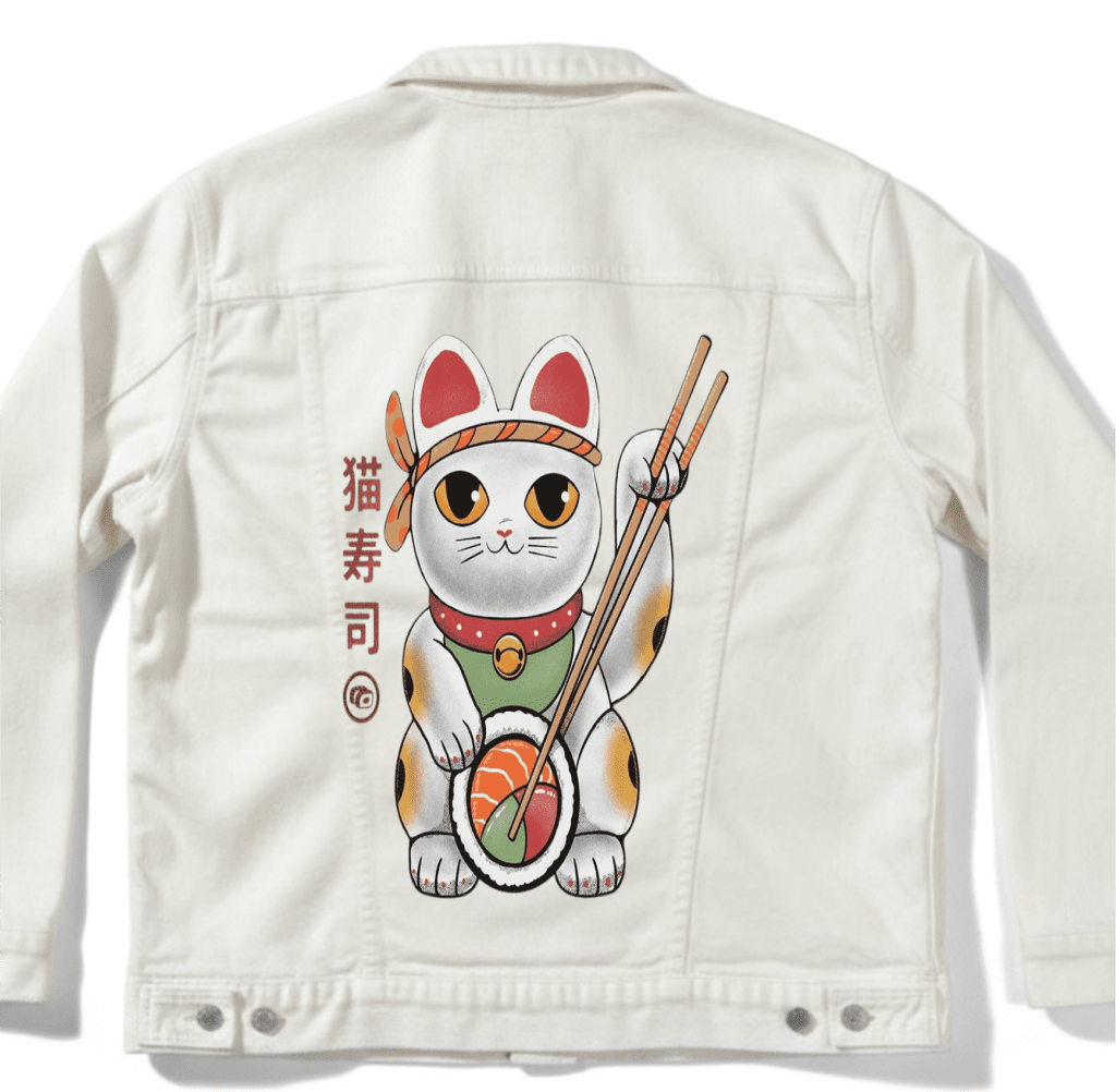 white denim, clarity takes control. The cat’s white fur reads clean and bright,