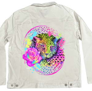 Ordered a custom blue jean jacket for my Mom with her art on it! She absolutely loves it! Seriously amazing quality, excellent customer service and super fast shipping! Vibrant colors too! If your looking for a custom jacket this is your place! Also super easy to design!