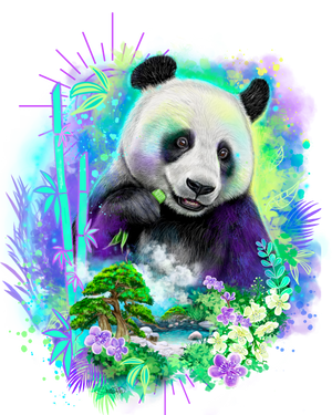 PANDA SPIRIT by SHEENA PIKE, digitally printed on a hand-made Denim Jacket with 3 color choices: Stonewash, White, or Black. Unisex XS S M L XL 2X 3X