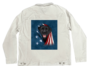 Liquid error (snippets/social-meta-info line 24): Unknown operator startswith PATRIOTIC BLACK LAB PUPPY by VINCENT HIE printed by DenimINK on hand-crafted Denim Jackets and other denim products - Denim INK