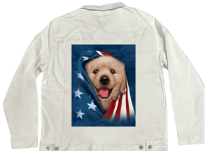 Liquid error (snippets/social-meta-info line 24): Unknown operator startswith PATRIOTIC GOLDEN RETRIEVER by VINCENT HIE printed by DenimINK on hand-crafted Denim Jackets and other denim products - Denim INK