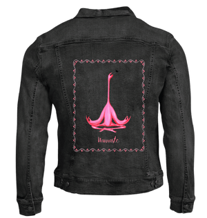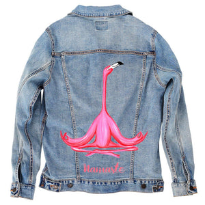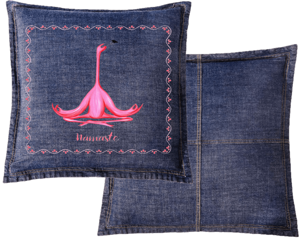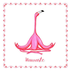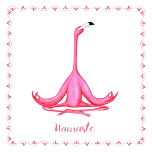 beneath the figure. this artwork is titled “Pink Flamingo Meditating Namaste”
