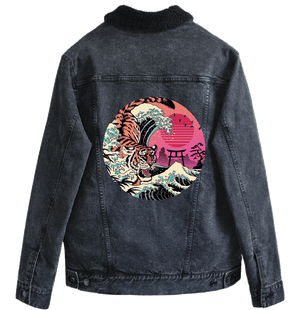 Stonewashed denim makes Rad Tiger Wave feel weathered and mythic, like a legend retold rather than a moment unfolding.