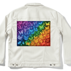 stonewashed denim, Rainbow Butterflies takes on a soft,