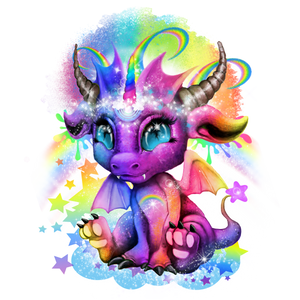 RAINBOW LIL DRAGONZ by SHEENA PIKE, digitally printed on a hand-made Denim Jacket with 3 color choices: Stonewash, White, or Black. Unisex XS S M L XL 2X 3X