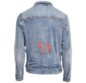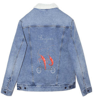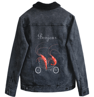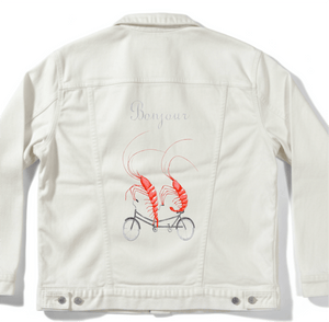 this artwork lives on stonewashed denim, the shrimp soften immediately. Pigment