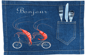 settles into the fabric. The word “Bonjour” fades just enough to feel worn-in,